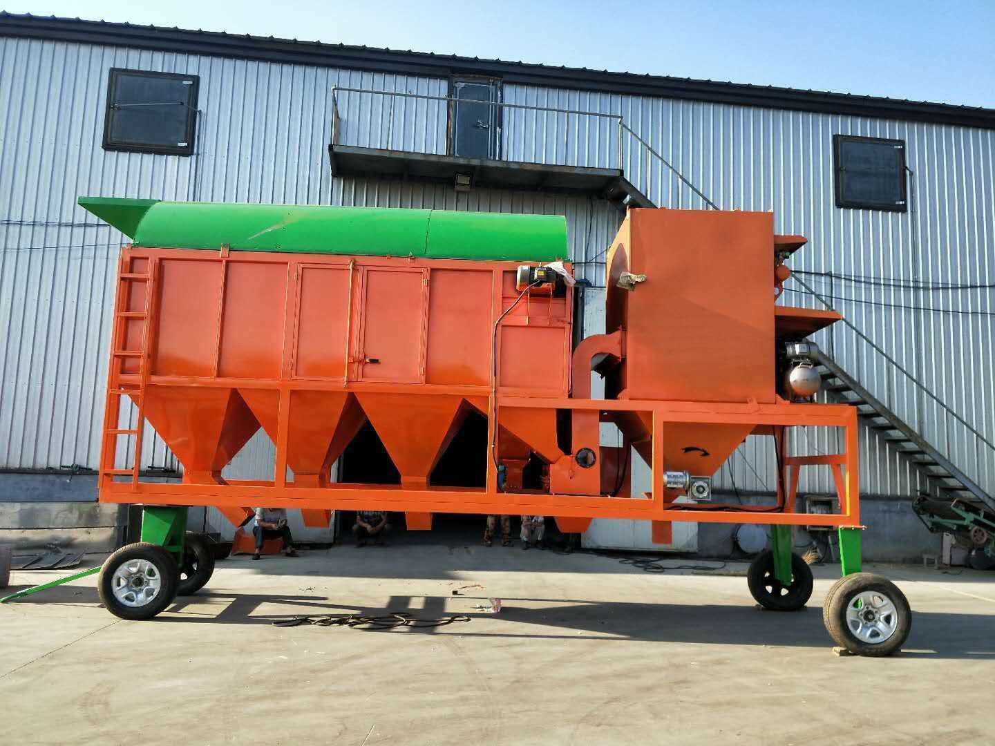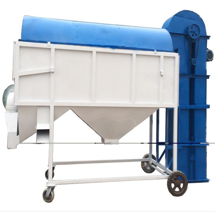 移動(dòng)式大型圓筒清理篩主要是利用糧食顆粒于雜質(zhì)顆粒的大小不同,通過(guò)篩筒的旋轉(zhuǎn)連續(xù)篩選,即可將原糧中的大雜、細(xì)雜予以,并且經(jīng)過(guò)風(fēng)機(jī)風(fēng)選作用再進(jìn)行二次清理,將裹進(jìn)凈糧中的輕雜予以。